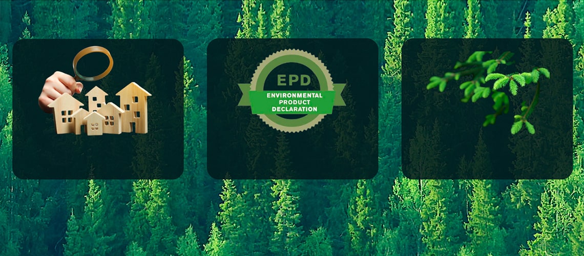 Vi bygger med lokalt producerade träprodukter och genom vår FSC®-certifiering säkrar vi att det trä vi använder idag inte ska äventyra framtida generationers möjlighet till ett ekonomiskt livskraftigt skogsbruk. Vi försäkrar att det trä vi bygger med kommer från ansvarsfulla skogsbruk och att alla som arbetar inom skogsbruket har rättigheter och en bra arbetsmiljö. Våra element är dessutom listade i Svanens husproduktportal och kan användas i Svanenmärkt byggande. Genom att använda produkter listade i Svanens husproduktportal blir påverkan på miljön så liten som möjligt samtidigt som vi bidrar till våra kunders Svanenmärkning då vi levererar lätta, starka och projektanpassade taklösningar för hållbara byggnader. Många av våra leveranser har gått till hus som certifierats av Miljöbyggnad, BREEAM, LEED och så vidare. Vi finns även med i Basta, Byggvarubedömningen och Miljövarubedömningen.